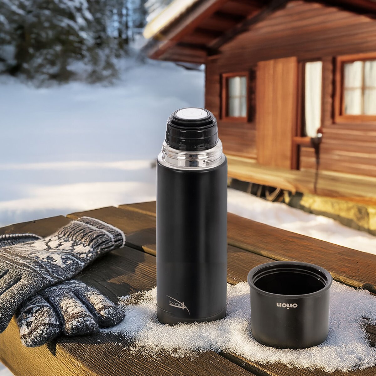 Je vyrobena z nerezové oceli a kombinace plastů ABS a PP se silikonovým těsněním zajišťuje bezpečné a pohodlné používání. Užitný objem termosky je 0,35 l.