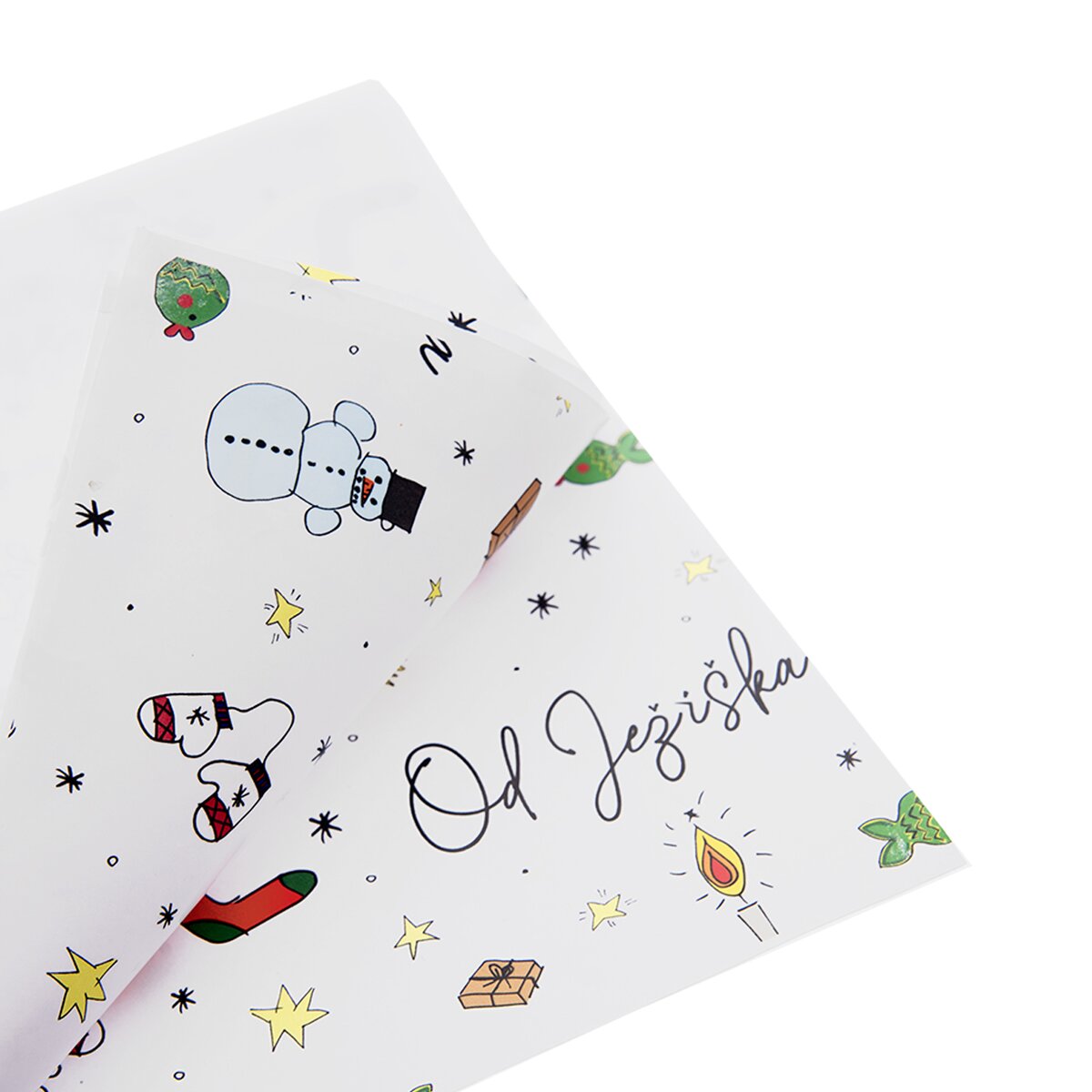 Aby dárek dobře vypadal, je třeba jej zabalit do pěkného papíru. Potěšte své blízké, kamarády nebo kolegy a dolaďte balení dárků k dokonalosti. Nápis Od Ježíška se objevuje na tomto originálním dekoru, který vznikl v kreativní dílně našich designérů.