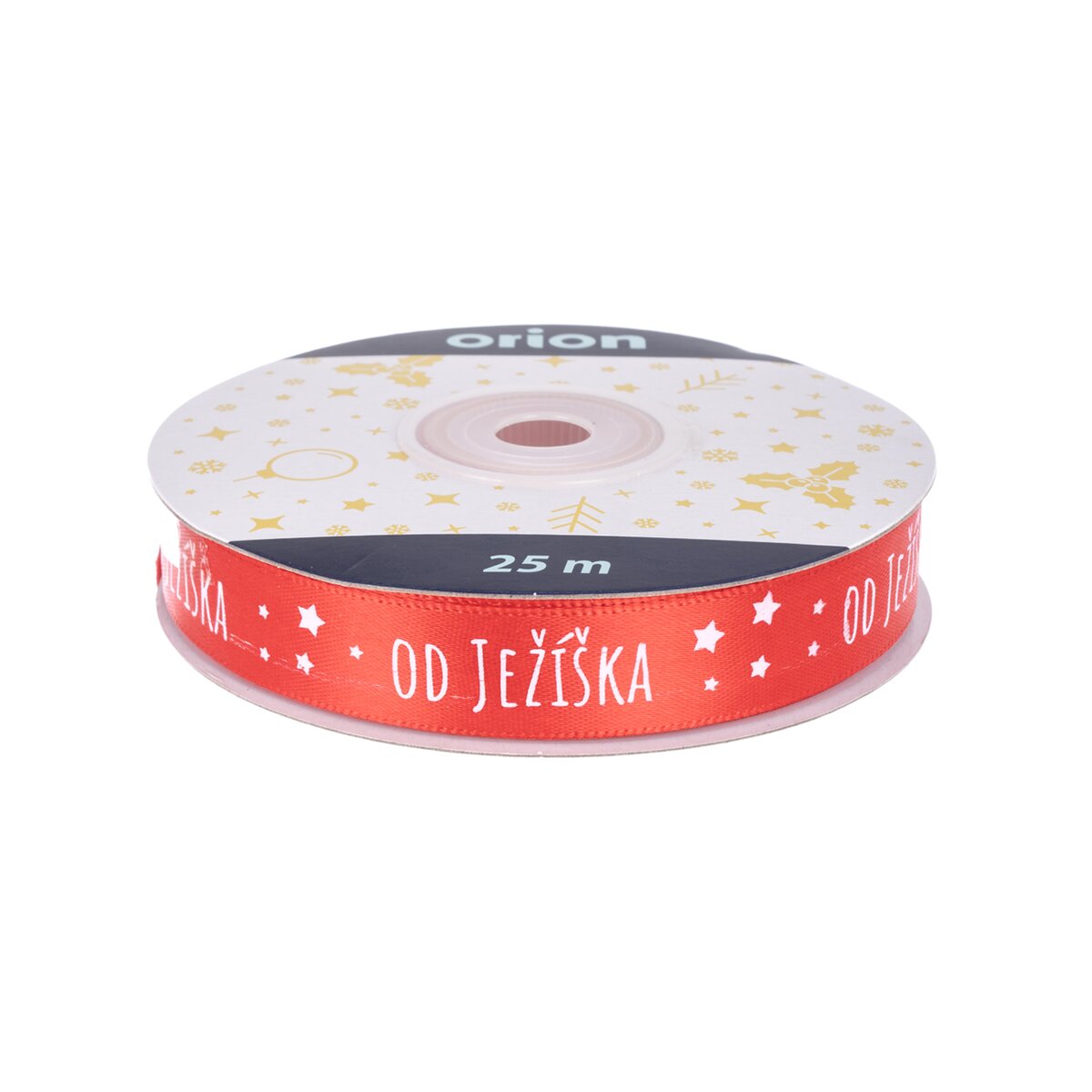 Kód produktu 823107Červená stuha s potiskem "OD JEŽÍŠKA" je určena k originálnímu balení vánočních dárků nebo k doplnění nejrůznějších vánočních dekorací. Má délku 25 m.