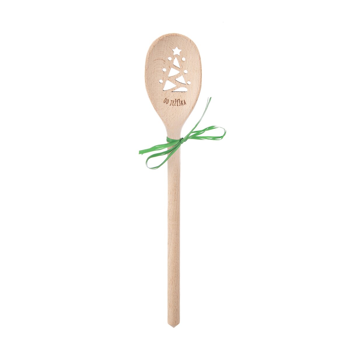 Tato buková vařečka je zdobena textem "OD JEŽÍŠKA", nad nímž je vypalovaný motiv vánočního stromku. Ten vznikl v dílně našich designérů.