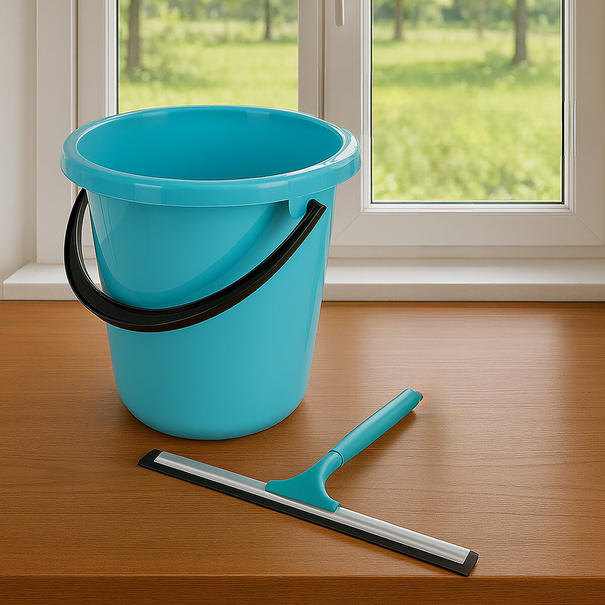 Základem každého úklidu je pořádné vybavení. K umývání podlah, okenních rámů apod. vám poslouží tento menší plastový kbelík s uchem. Výhodou je i vnitřní odměrná stupnice.