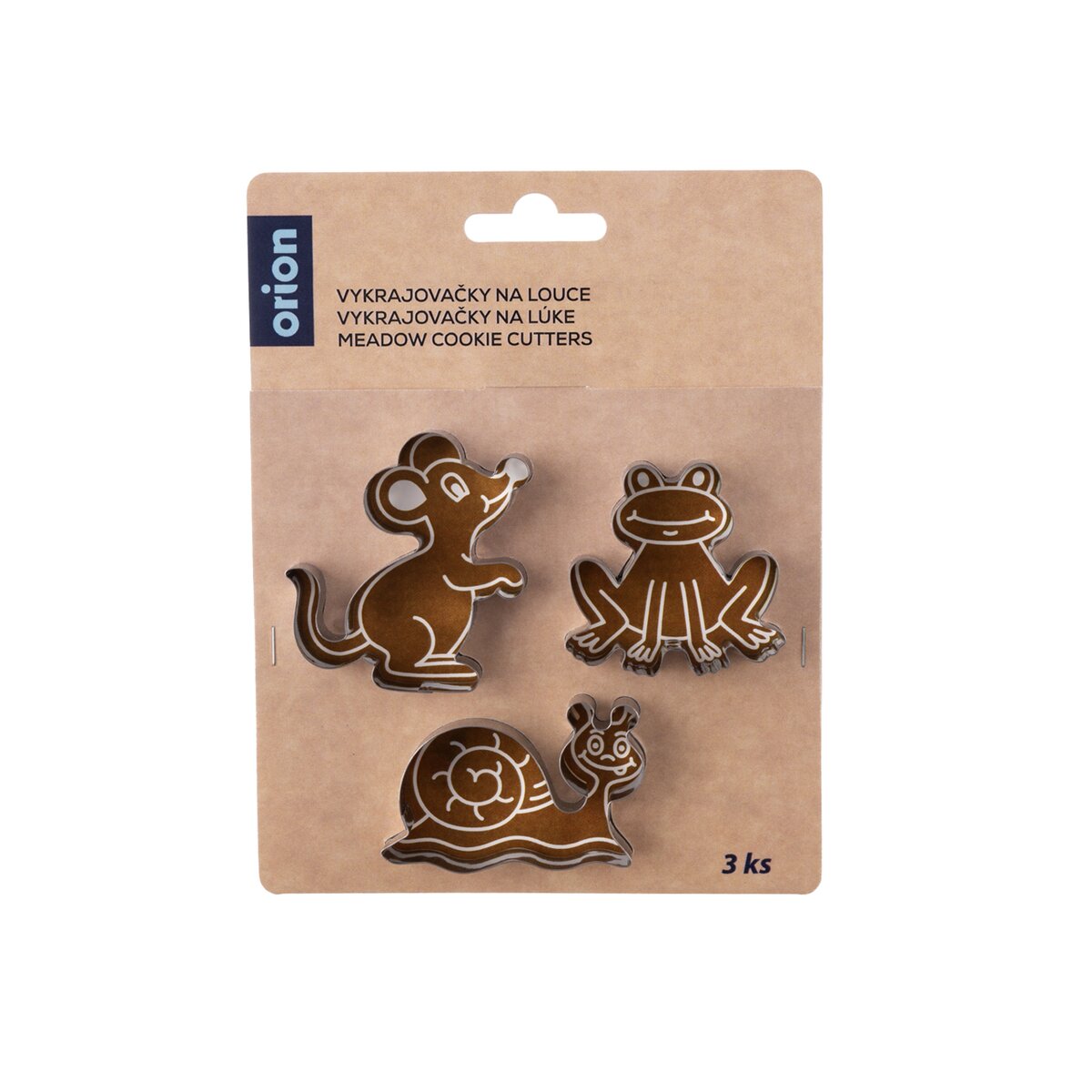 Kód produktu 132627Sada 3 nerezových vykrajovaček ve tvaru myšky, žabky a šnečka je určena k vykrajování perníčků, sušenek, marcipánu i pro jiné kreativní práce.