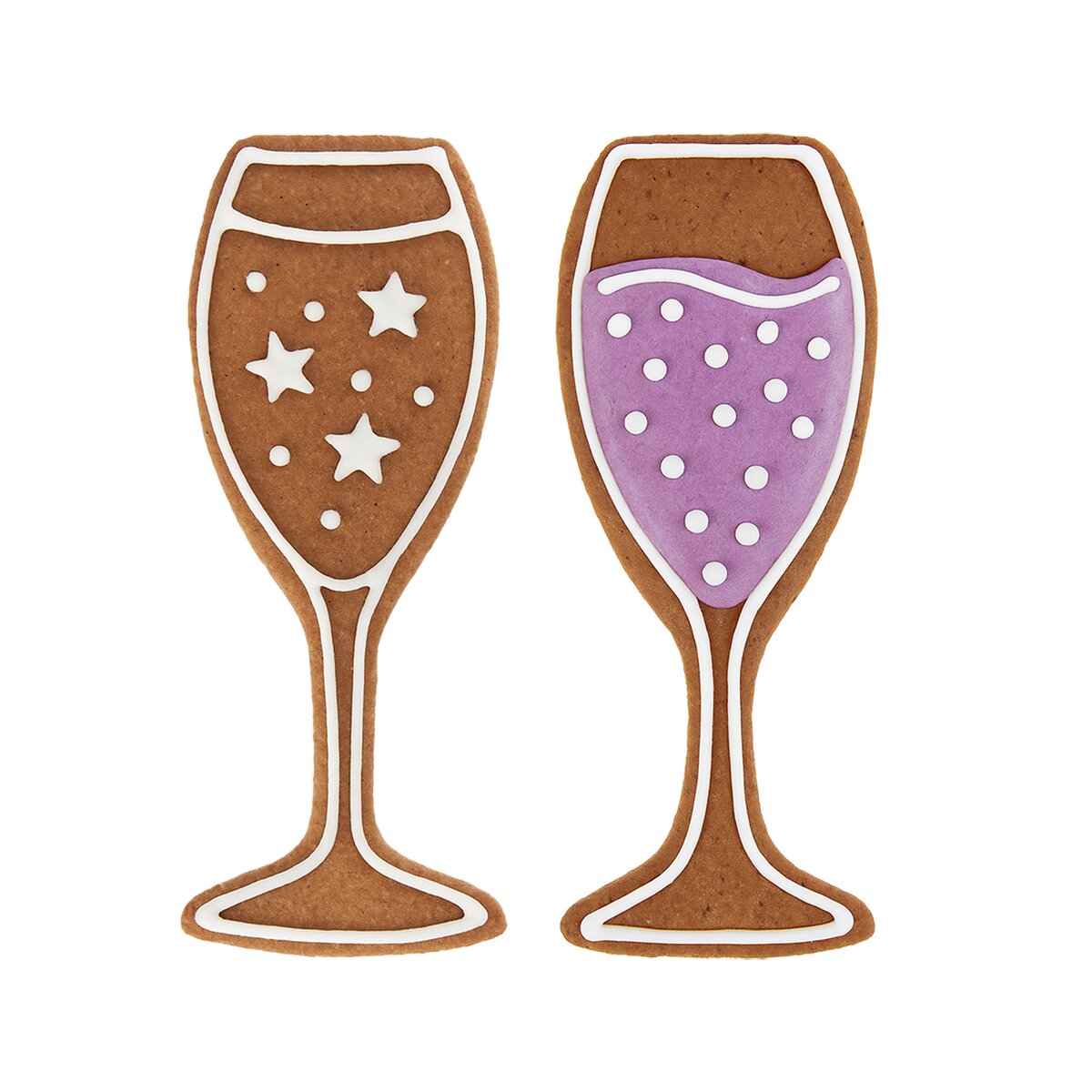 Ani oslava jubilea, svatba nebo narozeniny se neobejdou bez sušenek s vtipným motivem skleničky vína nebo sektu plného bublinek. Ozdobte si upečenou skleničku z perníku a doplňte ji např. rokem narození nebo v případě, že perníčky chcete použít jako jmenovky pro zasedací pořádek hostů na svatbě nebo oslavě, je dozdobte jménem.