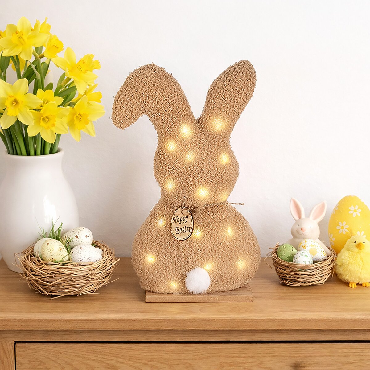 Více informacíDekorativní zajíc je půvabným doplňkem velikonoční výzdoby, který do interiéru vnese milou jarní atmosféru. Díky jemnému LED osvětlení působí útulně a vytváří hřejivé, příjemné světlo. Pokud jej postavíte na okno, bude vypadat, jako když se dívá ven a očekává příjemné jarní počasí plné kvetoucích stromů a sluníčka.