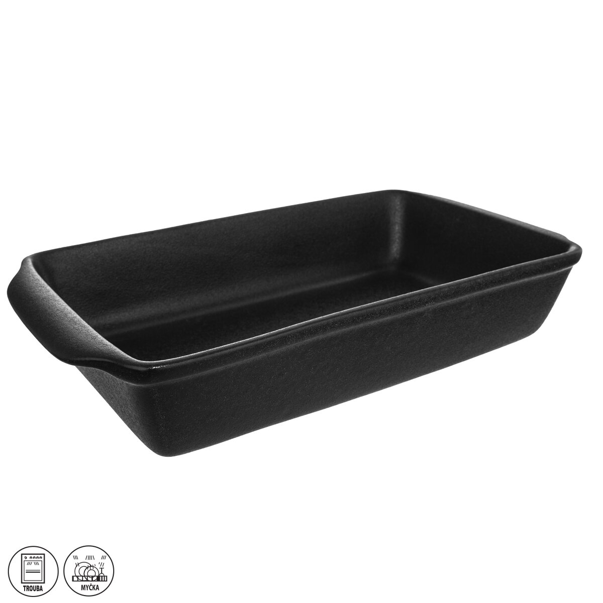 Miska zapékací pro přípravu zapečených slaných i sladkých dobrot. Materiál: černý porcelán – hrubý povrch. Lze použít v troubě – do 230 °C, myčce na nádobí i chladničce. Rozměry: 40x21,5x7,5 cm.