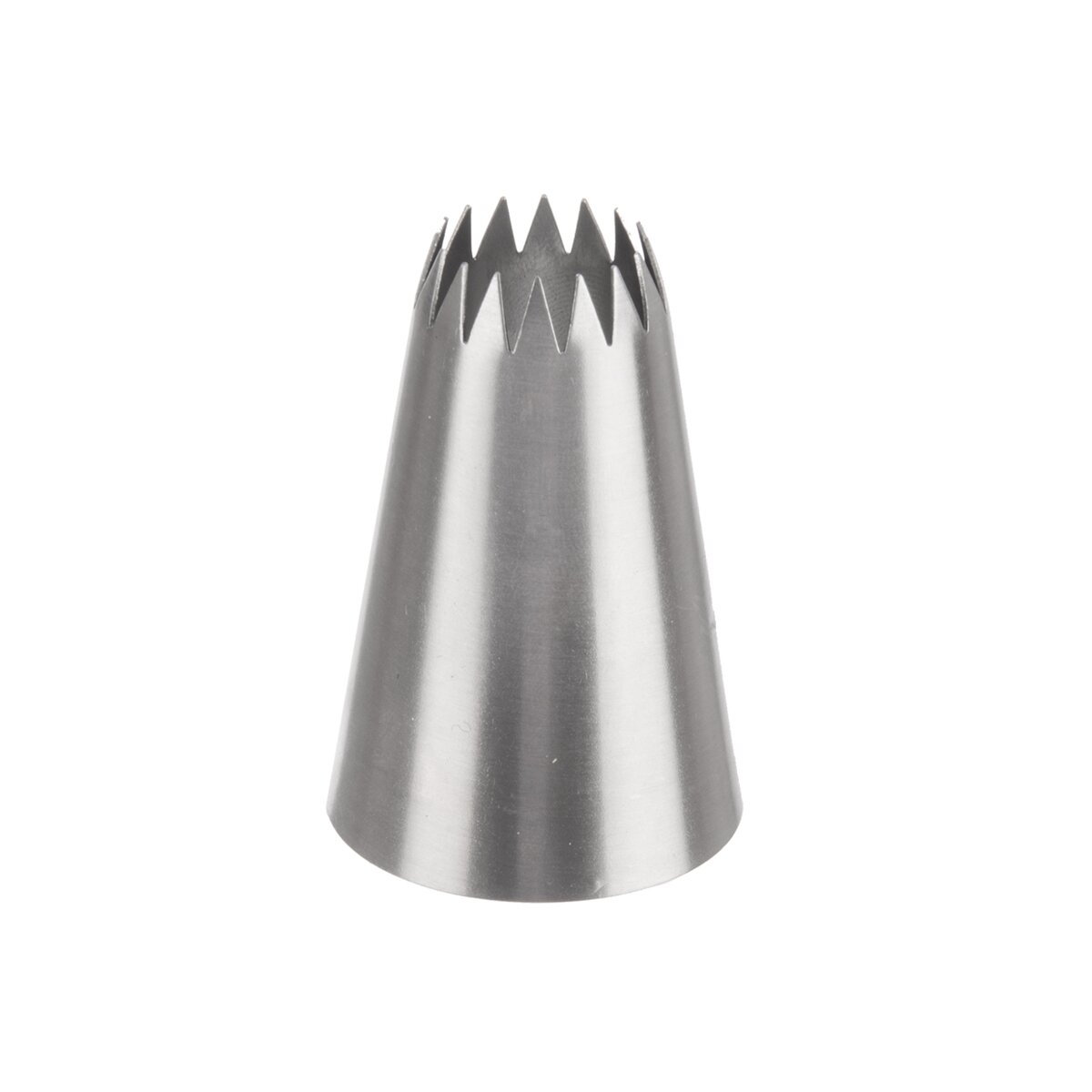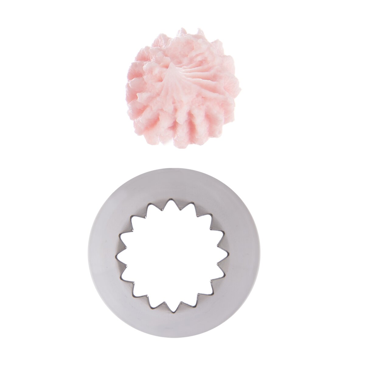 Kód produktu 153047Zajímavá zdobicí nerezová špička se 16 cípy je vhodná ke zdobení dortů, cupcaků a zákusků krémem nebo šlehačkou.